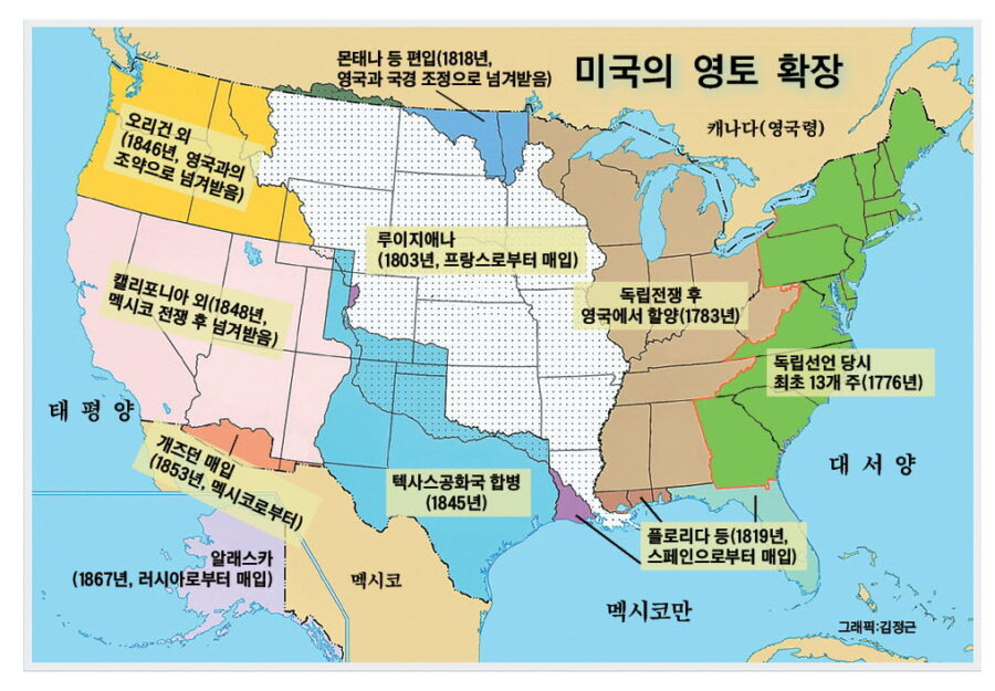 크리스토퍼 콜럼버스의 신대륙 발견 이후 아메리카는 유럽 열강 간의 치열한 경쟁 무대가 되었다. 19세기에 아프리카 대륙이 열강에 의해 분할되었던 것처럼 유럽 국가들은 아메리카를 앞다투어 탐험하고 점령하며 제각기 식민지화를 추진했다. 당시 유럽을 떠나 신대륙에 정착한 이들의 동기는 다양했다. 어떤 이들은 황금을 찾아 떠났고, 어떤 이는 미지의 땅에서 상업적 영향력을 넓히기 위해, 또 어떤 이들은 범죄로 인한 투옥이나 사형을 피하려 도피했으며, 일부는 종교적 박해를 피해 자유를 찾아왔다. 어떤 사람들은 단순히 모험을 위해 아메리카에 발을 디뎠다. 스페인은 북아메리카 남서부와 미시시피 강 유역을 중심으로 탐험과 정복을 추진했고, 프랑스는 대서양 연안과 캐나다 지역에 정착지를 세웠으며, 영국은 17세기부터 북미 동부 해안선을 따라 13개 식민지를 건설하면서 세력을 확장했다. 이들 식민지는 시간이 지나며 자치와 독립 의식을 키워갔고, 결국 1776년 미국은 독립선언을 통해 영국으로부터의 독립을 선언하고 새로운 국가로 태어났다. 그러나 독립 이후의 미국은 산업화와 농업 경제 사이의 긴장, 인종 차별과 노예제를 둘러싼 갈등 등으로 인해 심각한 내부 균열을 겪게 된다. 이러한 모순과 충돌은 향후 미국 사회의 방향과 정체성을 결정짓는 핵심 쟁점으로 작용했다.